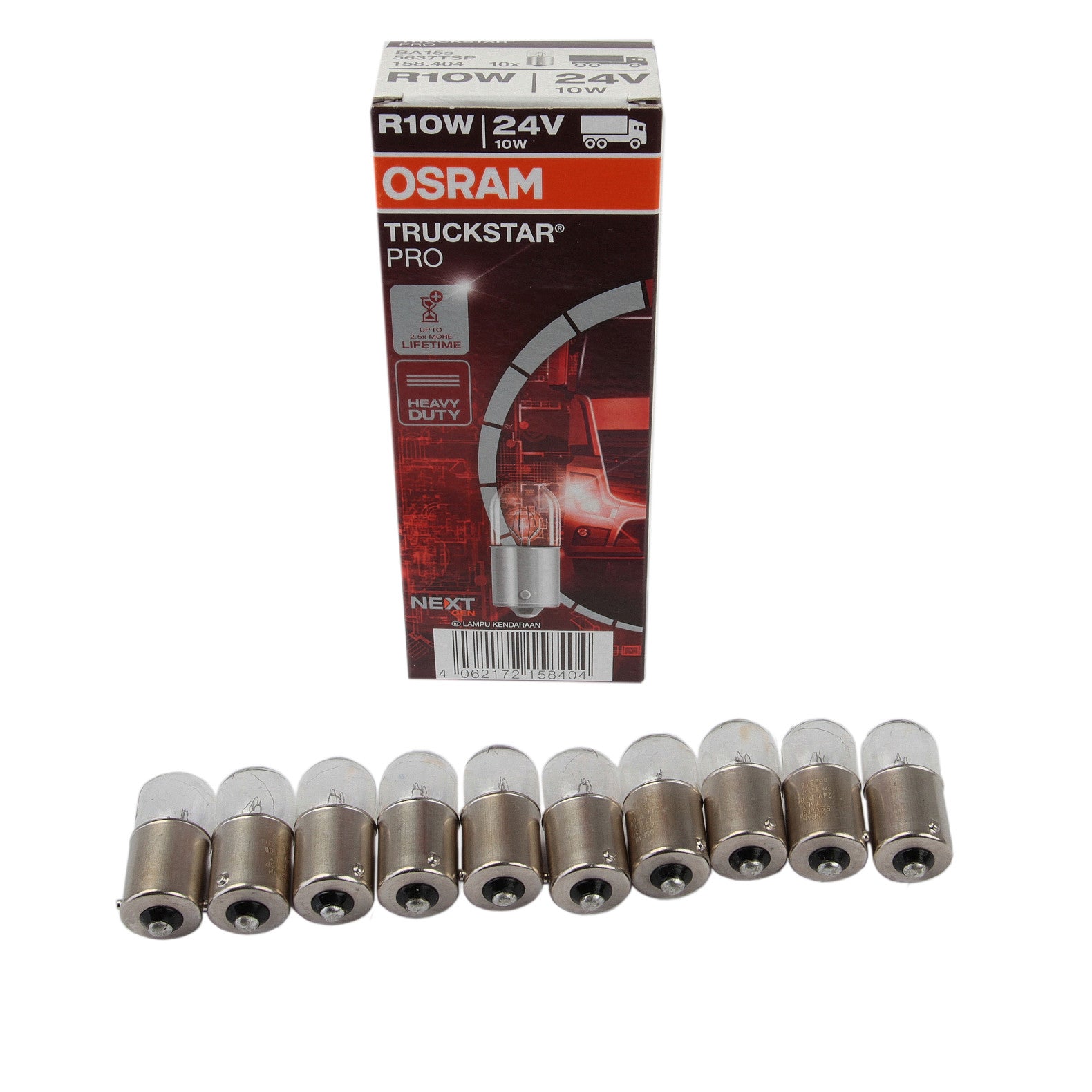TIp lampă : R10W Tensiune [V] : 24 Putere nominală [W] : 10 Variantă de execuție soclu lampă incandescentă : BA15s Tip ambalaj : Cutie Calitate : 10